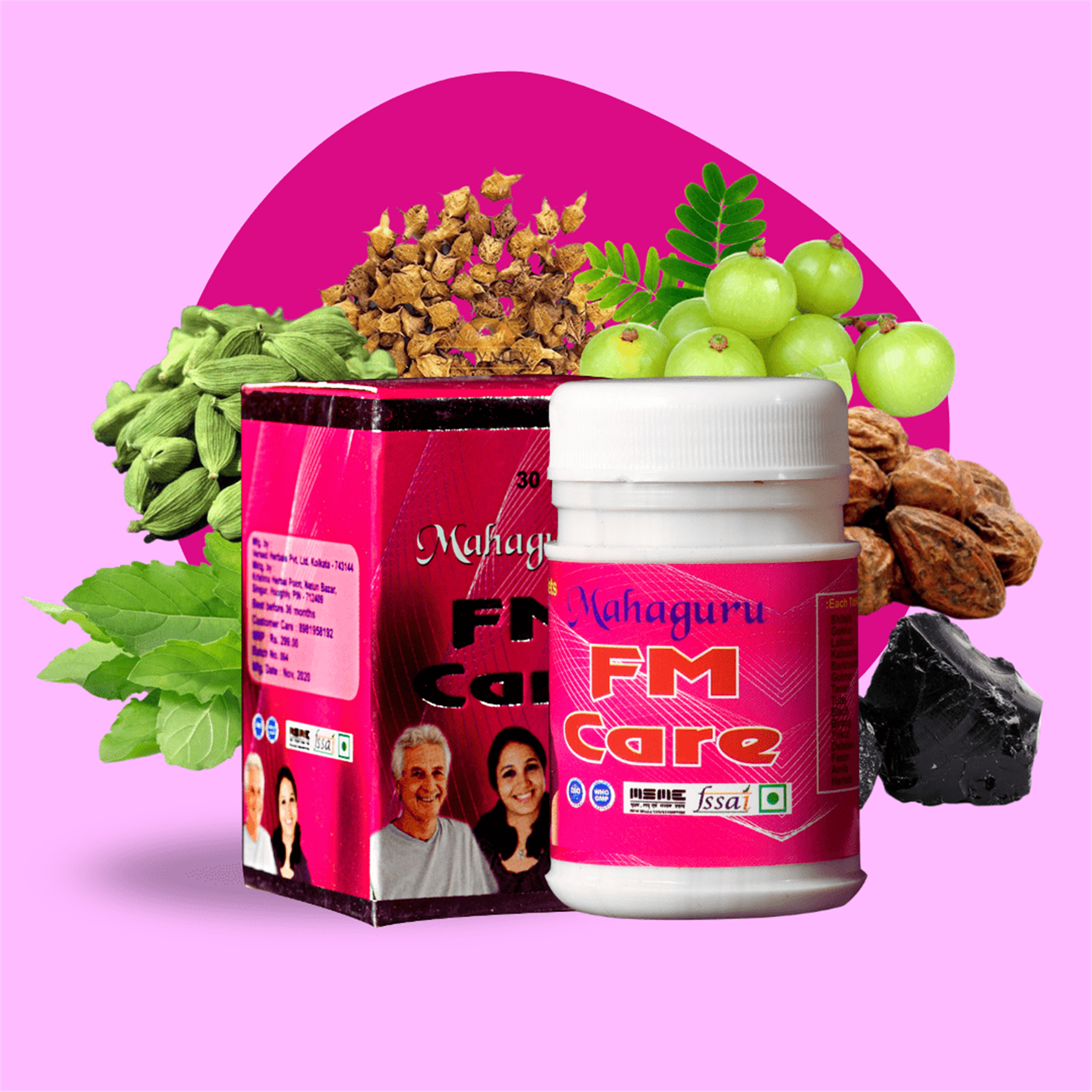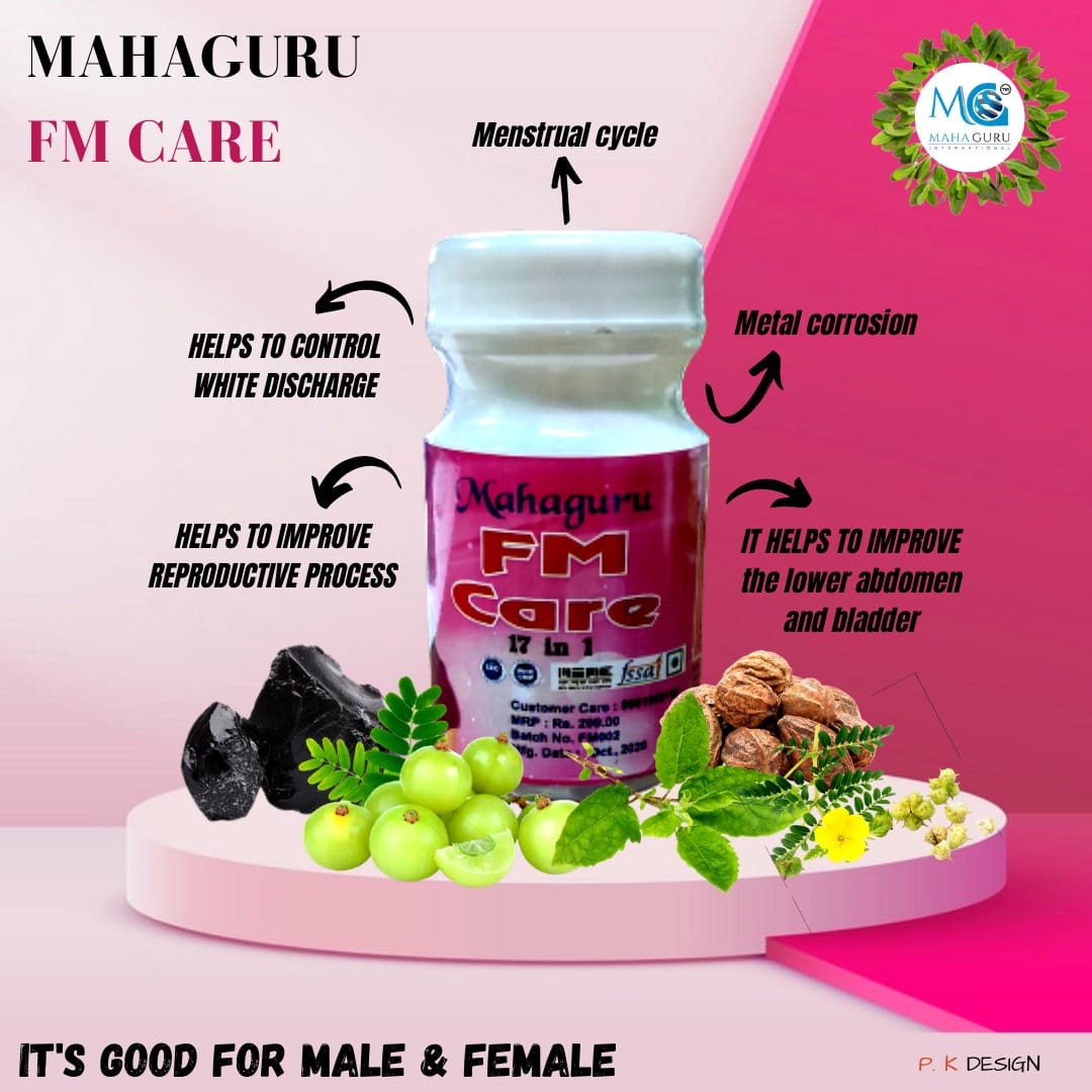 শিলাজিৎ, গোখুর, কাবাবচিনি, বংশলোচন, গুড়মার, তেওরী, তুলসি, এলাচ, বিরঙ, ত্রিকুট, দেবদারু, কেশর, আমলকী, হরিতকী, পঞ্চমূল প্রভৃতি উপকারী প্রাকৃতিক উপাদান এর সংমিশ্রণ দ্বারা প্রস্তুত " মহাগুরু এফ এম কেয়ার (Mahaguru FM Care)", যা পুরুষ ও মহিলা সকলের জন্যই ভীষণ উপকারী। এটি শরীরের রোগ প্রতিরোধ ক্ষমতা বৃদ্ধিতে সহায়তা করার পাশাপাশি তলপেটে ব্যাথা, প্রস্বাব জনিত সম্যসা, মূত্রথলির সমস্যা, পুরুষদের প্রোস্টেড গ্লান্ড এর সম্যসা ও ইউরিক অ্যাসিড বেড়ে যাওয়ার প্রবণতা প্রভৃতি প্রতিরোধে খুবই কার্যকরী। এছাড়াও মহিলাদের প্রজনন ক্ষমতা বৃদ্ধি, ঋতুচক্র কে স্বাভাবিক এবং সাদা স্রাব জনিত সম্যসাকেও ধীরে ধীরে স্বাভাবিক রাখতে সাহায্য করে। তাই ১৩ বৎসরের উর্দ্ধে যে কেউ এটির ব্যবহার করে উপকার লাভ করতে পারেন।