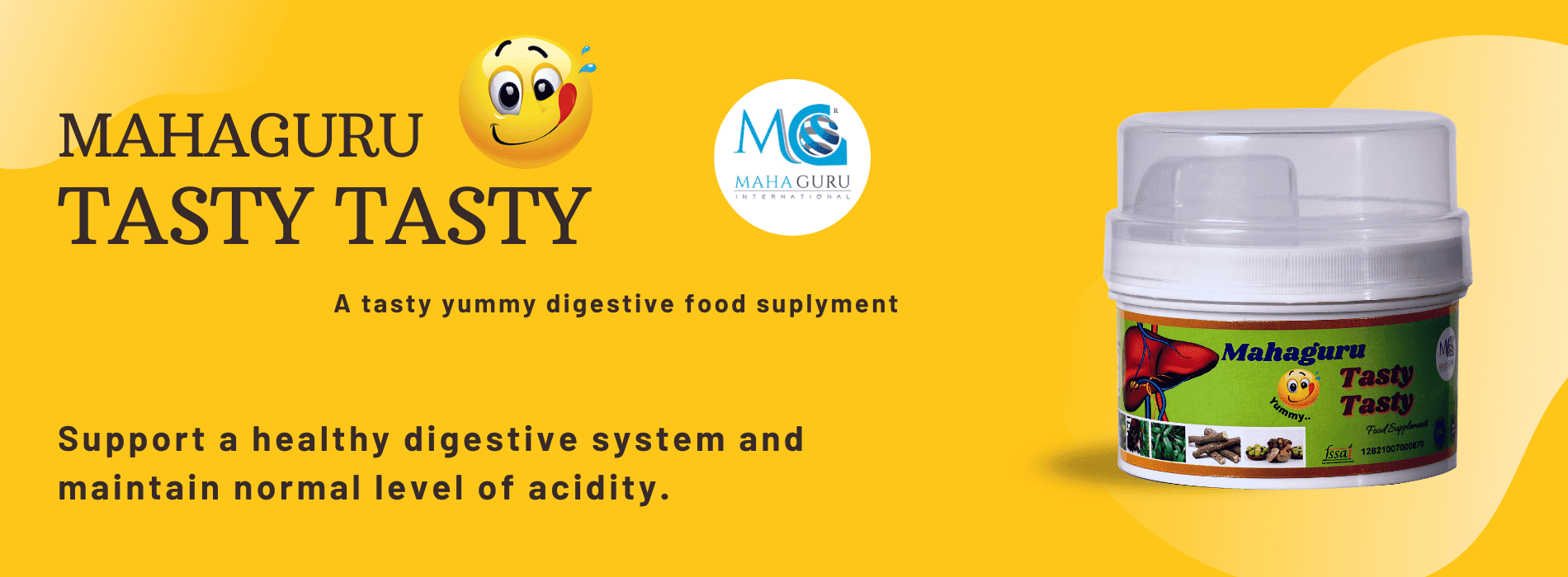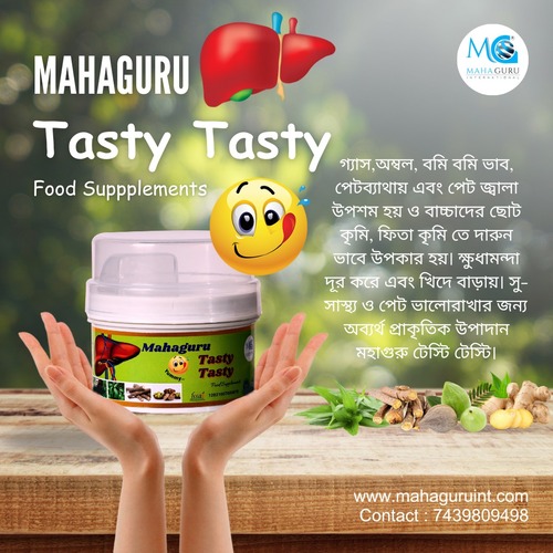 সুস্বাস্থ্য ও পেট ভালো রাখার জন্য অব্যর্থ "মহাগুরু টেস্টি টেস্টি (Mahaguru Testy Testy)"। এই ভেষজ মিশ্রণ আমাদের শরীরের ইমিউন প্রক্রিয়াকে সঠিক রেখে হজম প্রণালীর সম্যসা দূরীকরণে ভীষণ সাহায্য করে। অ্যাসিডিটি, বমি বমি ভাব, গ্যাস্ট্রাইটিস, পেট ব্যথা, পেট জ্বালা প্রভৃতি প্রতিরোধ করতে ব্যবহার করা যেতে পারে। এছাড়াও বাচ্চাদের পেটে কৃমি হবার প্রবণতা রোধ করে। এটি একটি সুস্বাদু ভেষজ মিশ্রন যা ক্ষুধামান্দ্য দূর করে, মুখের স্বাদ বাড়ায় এবং ভারী খাবারের পর আরামদায়ক অনুভূতি দেয়।