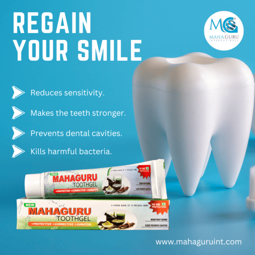 সৌন্দর্য কিংবা প্রয়োজনীয়তা উভয় কারণেই দাঁতের যত্ন অত্যন্ত গুরুত্বপূর্ণ। শুধু উজ্জ্বল হাসির জন্যই নয়, অস্বাস্থ্যকর মাড়ি এবং দাঁত অনেক গুরুতর স্বাস্থ্য সমস্যা ডেকে আনতে পারে, তাই নিয়মিত দুইবার ব্রাশ মৌখিক যত্নের একটি আবশ্যক রুটিন হওয়া উচিত। তাই " মহাগুরু টুথজেল (Mahaguru Toothgel) " যে কোনো রকম ক্ষতিকর রাসায়নিক কেমিক্যাল যথা প্যারাফিন, ফ্লোরাইড, কৃত্রিম স্বাদ এবং রং থেকে মুক্ত করে এমন ভাবে প্রস্তুত করা হয়েছে যে দাঁতকে উজ্জ্বল করে তোলার সাথে সাথে দাঁতের এনামেল কেও সুরক্ষা প্রদান করে। এছাড়াও এর মধ্যে ব্যবহৃত প্রাকৃতিক উপাদান যেমন নিম, লবঙ্গ, পুদিনা, টি ট্রি অয়েল, হলুদ, মাজু ফল প্রভৃতি উপাদান দাঁত, মাড়ি ও মুখ গহ্ববরের ক্ষতিকর ব্যাকটেরিয়াগুলোকে প্রাকৃতিকভাবে নির্মূল করতে ও বিভিন্ন সম্যসাকে দূরে রাখতেও সাহায্য করে যথা - ক্যাভিটিজ,অস্বাস্থকর মাড়ি বা মাড়ির প্রদাহ , প্লাক, মুখের দুর্গন্ধ, দাঁতের দাগছোপ কমাতে, দাঁতের বেদনা, দুর্বল দাঁত ইত্যাদি..।
